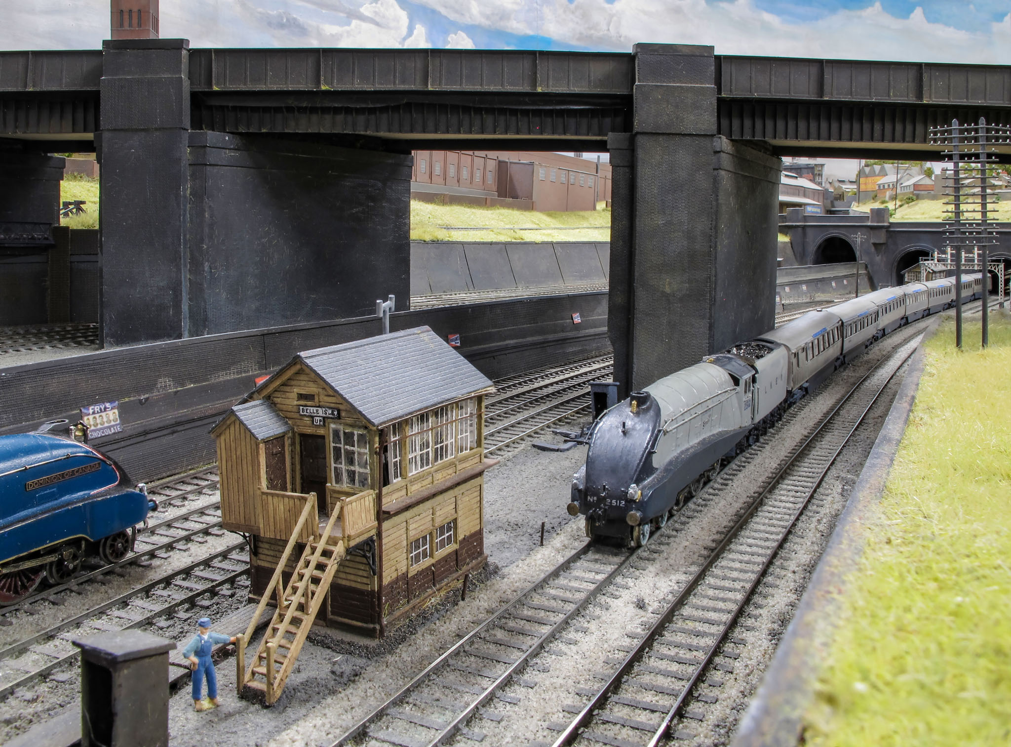It has been a long time in the making, and portrays the LNER main line just north of Kings Cross. The flowing trackwork, with a procession of colourful LNER main line express trains has been wonderfully modelled, together with freight trains and goods yards. The urban environment has also been superbly modelled.