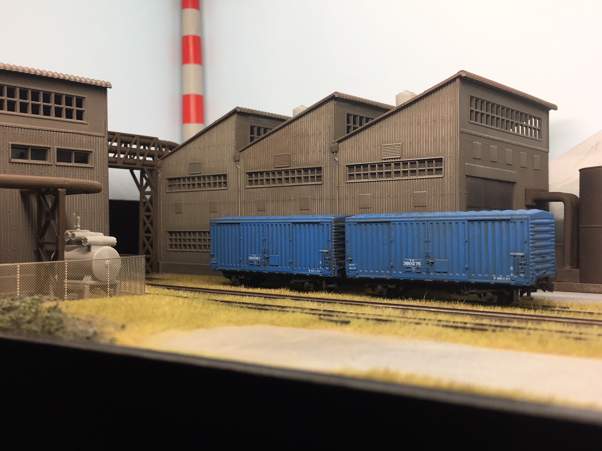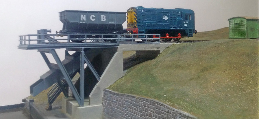 British Oak is located in West Yorkshire, alongside the Calder & Hebble Navigation canal at the Eastern end of the Denby Grange colliery line. Coal was transported from the pits to the canal, from where it was loaded into barges for onward transportation to Thornhill Power Station. It was a surprisingly long lived enterprise, lasting in service until the mid 1980s. The scene is a highly compressed version of the scene in reality, but it contains the main elements from the overbridge to the canal drop. It makes a conveniently self-contained little diorama which can be operated by a single loco and a few wagons, either hoppers or bottom door mineral wagons.