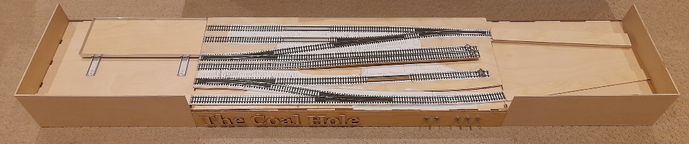 The Coal Hole portrays a cramped corner of a steam loco depot somewhere in ex-LNW/LYR territory during the 1950s. The shed complex will be cut in half by a road overbridge at the left-hand end of the modelled scene, with the rest of the yard, main shed and turntable imagined to be beyond the bridge. The eponymous "coal hole" style of manual coaling stage, with water tank atop, will form the centrepiece of the layout. One end of a loco shed will sit behind (to the left of the inspection pits already installed).