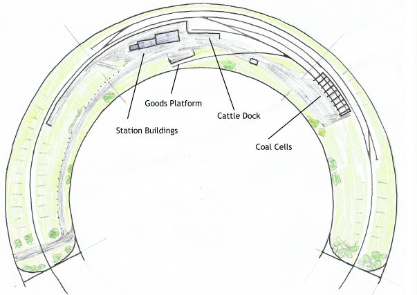 Brafferton was a real station built on the Pilmoor Boroughbridge & Knaresborough Railway to serve the two small villages of Helperby and Brafferton in North Yorkshire. In reality it was a quite station on a secondary line, the main link being via Ripon, and closed to passenger services in 1950. At the same time the line between Brafferton and Pilmoor was lifted. Brafferton became a terminus for coal traffic and a dumping ground for expired wagons.