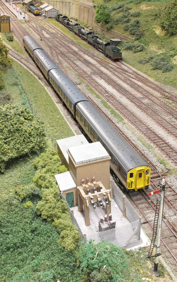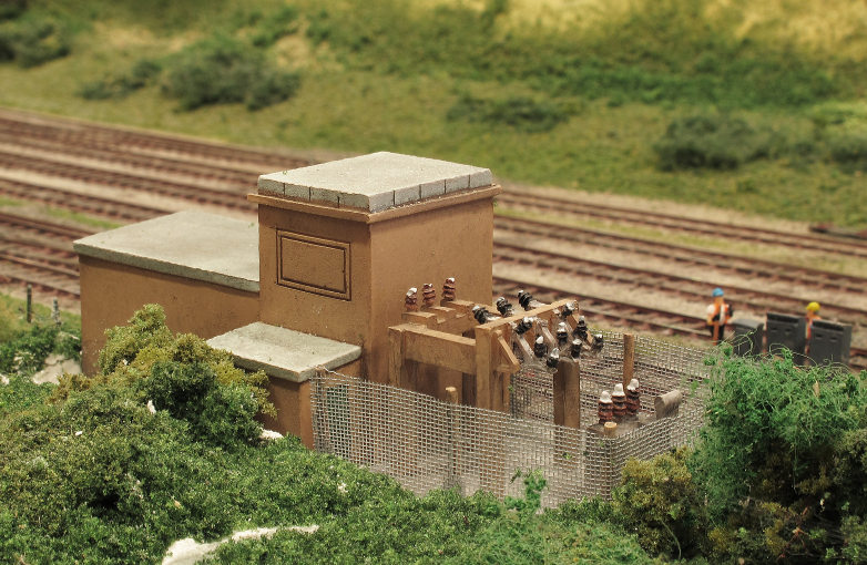 Lineside transformer - a ready-to-plant product from Graham Farish with one half removable as it covers a baseboard joint.