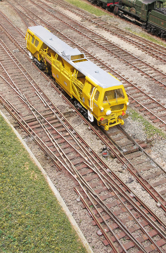 The Plasser-Theurer 07/16 tamper sidles past the single slip, heading back towards the Capital. This is what finescale trackwork is all about!